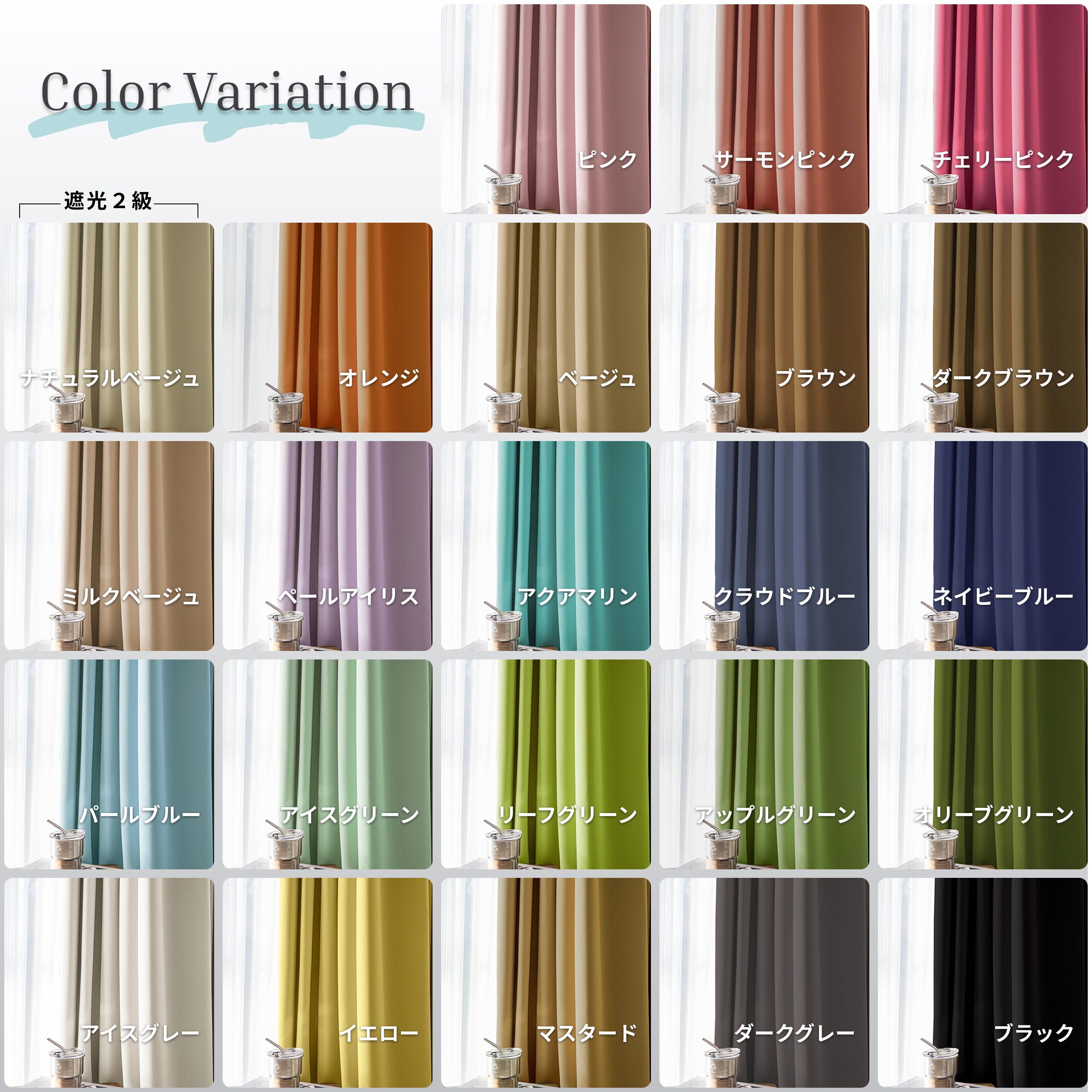 レンタル遮光カーテンは、全23色の豊富なラインアップからお選びいただけます。落ち着いたトーンから明るく華やかな色合いまで揃っているので、リビングや寝室、オフィスなどあらゆる空間に合わせて自在にコーディネート可能です。遮光性に優れており、外からの光をしっかりと遮ることで快適な睡眠や集中できる作業環境をサポート。さらにレンタルなら季節や気分に合わせて気軽に模様替えでき、日々の暮らしに彩りと心地よさをプラスします。